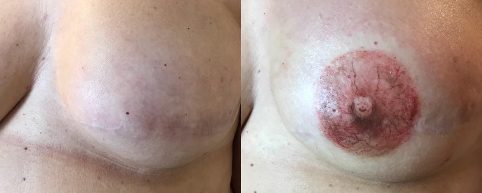 In seguito ad interventi sul seno può essere utile ed a volte provvidenziale una dermopigmentazione del complesso areola/capezzolo. Questo trattamento si pratica per coprire cicatrici da mastoplastica additiva o per ricostruire interamente un areola ed un capezzolo in seguito a mastectomia. Attraverso una dermopigmentazione eseguita da un operatore esperto e formato per tali scopi è possibile riacquistare un ottimo rapporto con questa parte del corpo, intima quanto importante per rivivere la propria femminilità serenamente in seguito ad una delicata e sofferente esperienza. Questo genere di trattamenti possono aver bisogno anche di tre sedute, seguite da un mantenimento annuale*. (*=Tempi indicativi e soggettivi). In talune circostanze è possibile intervenire anche con colori definitivi (che possono conservarsi nel derma senza essere mai più revisionati). La dermopigmentazione paramedicale si occupa anche di coprire cicatrici o camuffare vitiligine. Sono svariate ed ancora non del tutto inesplorate le applicazioni che possono essere svolte da tecniche di dermopigmentazione paramedicale.